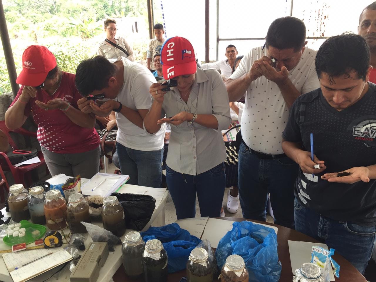 Here, we work with farmers and communities who will never have access to soil tests. So we focus on observations you can make with your senses: feeling the soil, observing diversity, noting growth, watching insects return, checking soil consistency, and so on. Often, we use a field microscope to project soil samples and show people the life in the soil and the changes that aren’t visible to the naked eye.